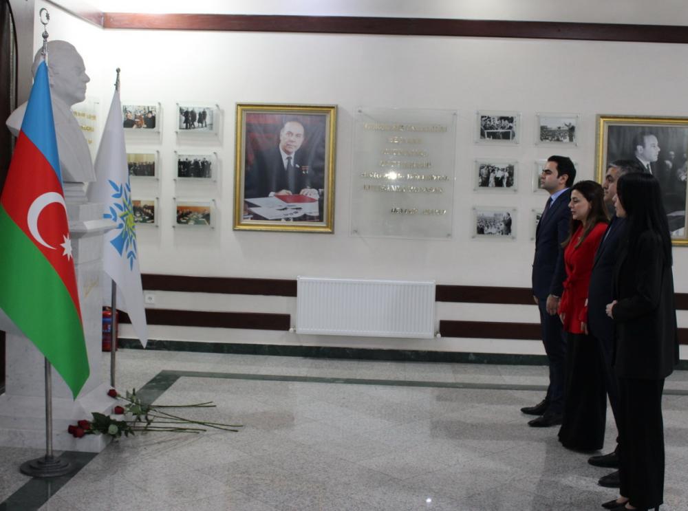 Tədbir iştirakçıları öncə Ulu Öndər Heydər Əliyevin büstü önünə gül dəstələri qoyaraq əziz xatirəsini ehtiramla yad ediblər.