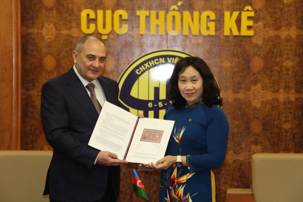 Nümayəndə heyətinin Vyetnamın Milli Statistika İdarəsinin baş direktoru Nguyen Thi Hong ilə görüşü zamanı isə Azərbaycan ilə Vyetnamın bir-birinin maraqlarına hörmət edən dost və tərəfdaş ölkə olduqları, dövlətlərarası münasibətlərin yüksələn xətt üzrə inkişafının məmnunluq doğurduğu qeyd edilib. İki ölkənin iqtisadi-ticari, mədəni, humanitar, təhsil, turizm, enerji və digər sahələrdə işbirliyinin genişləndirilməsində maraqlı olduqları vurğulanaraq “Azərbaycan Respublikasının Dövlət Statistika Komitəsi ilə Vyetnam Baş Statistika İdarəsi arasında statistika sahəsində əməkdaşlıq haqqında Anlaşma Memorandumu”ndan irəli gələn vəzifələrin həyata keçirilməsinin beynəlxalq səviyyədə müqayisə edilə bilən və hər iki ölkənin sosial-iqtisadi vəziyyətini əks etdirən statistik məlumatlar mübadiləsinin genişləndirilməsi və dövlətlərarası əməkdaşlığın möhkəmləndirilməsi baxımından önəmi qeyd olunub.