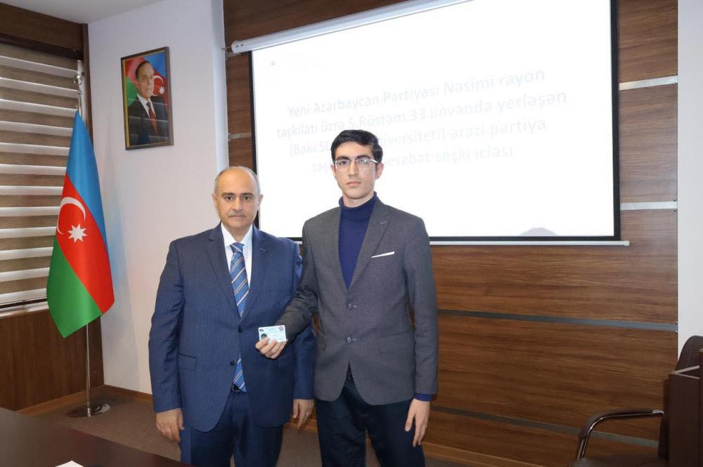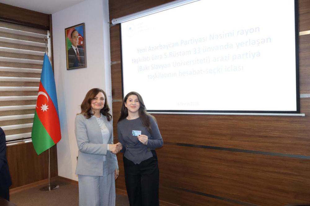 2026-cı il fevralın 6-da Yeni Azərbaycan Partiyası (YAP) Nəsimi rayon təşkilatının Süleyman Rüstəm küçəsi 33 ünvanı üzrə (Bakı Slavyan Universiteti) ərazi partiya təşkilatının hesabat-seçki iclası keçirilib. İclasda ərazi partiya təşkilatının 260 üzvündən 228 nəfəri iştirak edib.