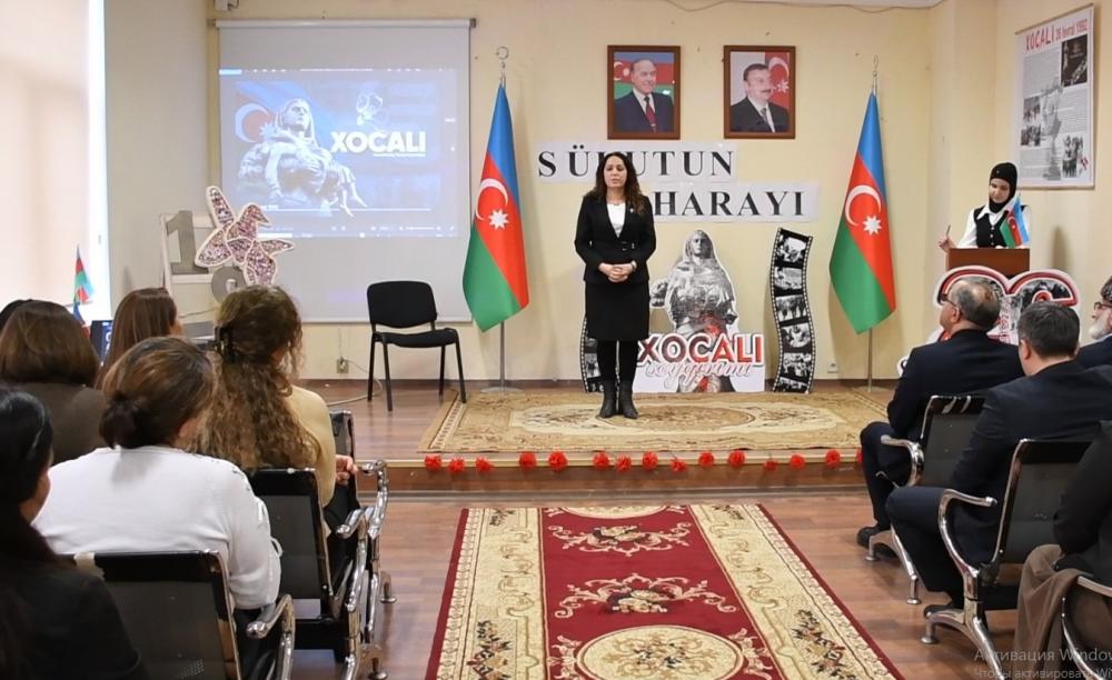 Tədbir çərçivəsində çıxış edən şagird və müəllimlər Azərbaycan xalqına qarşı törədilmiş bu ağır cinayətin mahiyyətindən, Xocalı faciəsinin səbəblərindən və acı nəticələrindən bəhs edərək, soyqırımının tariximizin ən faciəli səhifələrindən biri olduğunu vurğulayıblar.