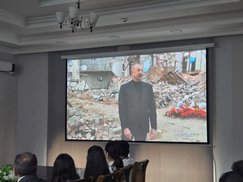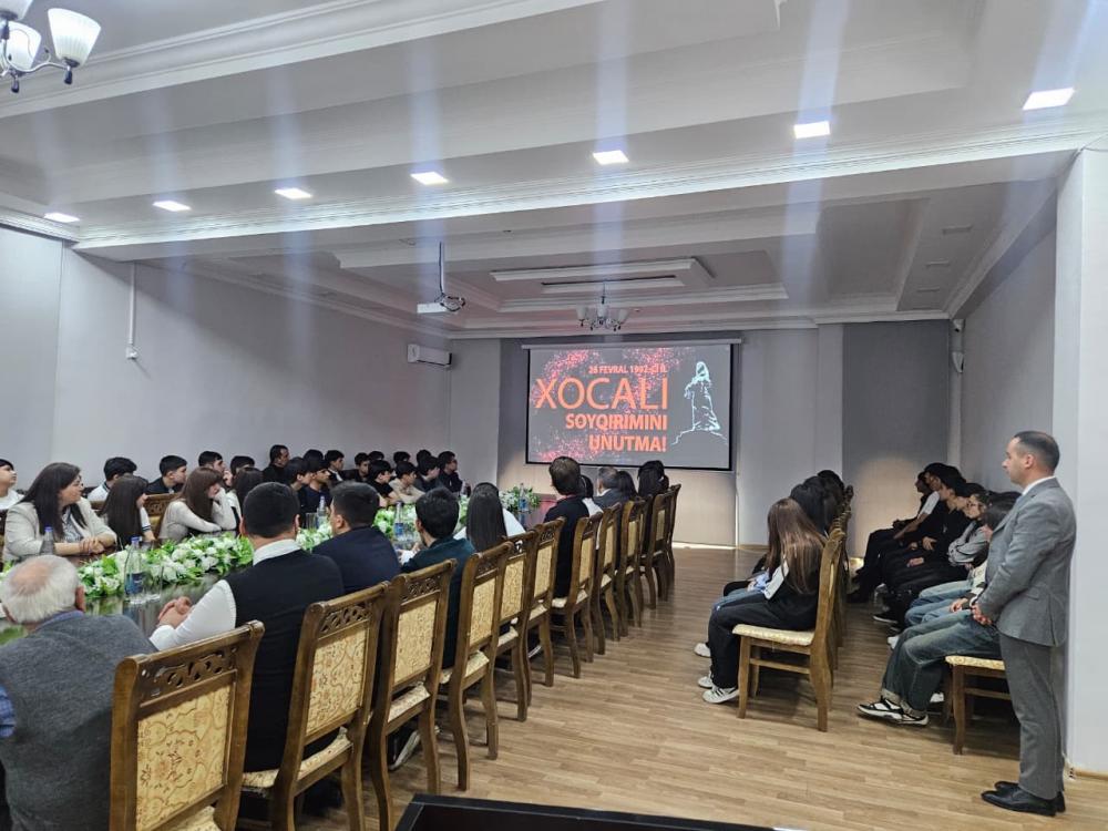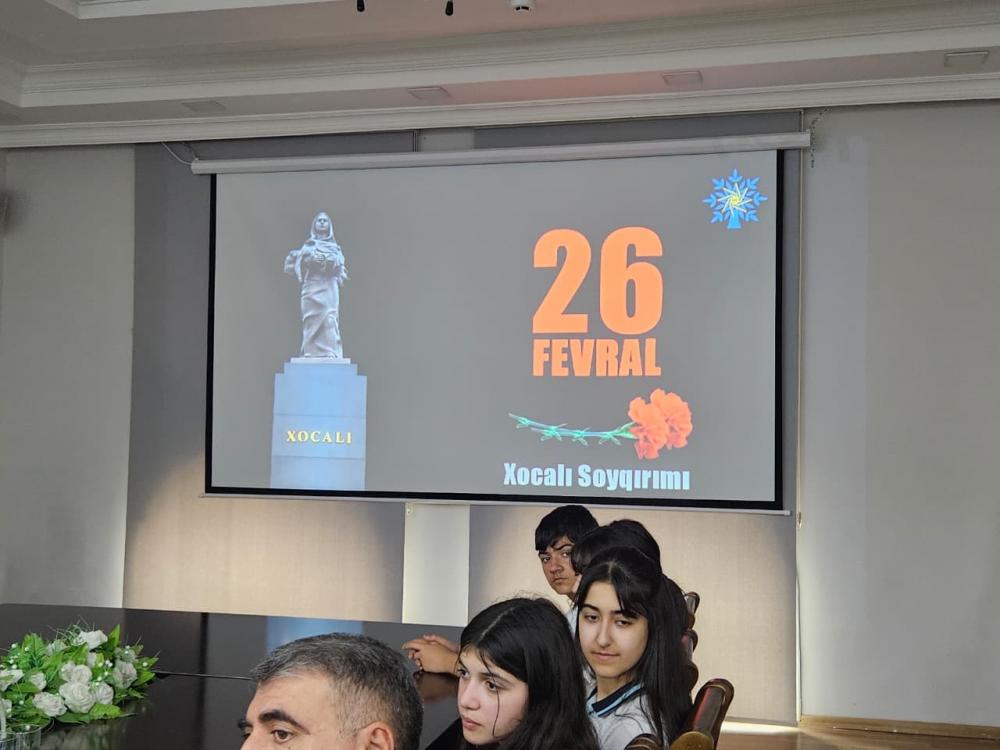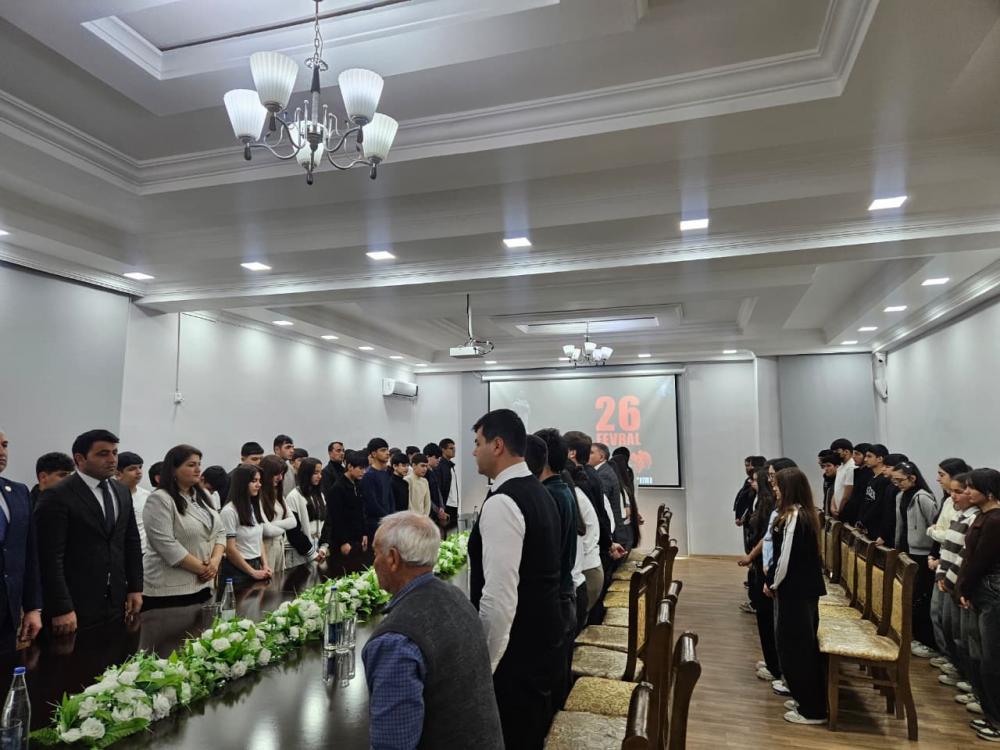 Tədbir iştirakçıları Ümummilli Lider Heydər Əliyevin, torpaqlarımızın azadlığı və bütövlüyü uğrunda canlarını qurban vermiş şəhidlərimizin və “Xocalı faciəsində” faciəli şəkildə həyatlarını itirmiş insanların əziz xatirəsini bir dəqiqəlik sükutla yad etdilər. Sonra Xocalı Faciəsindən bəhs edən film nümayiş etdirildi.