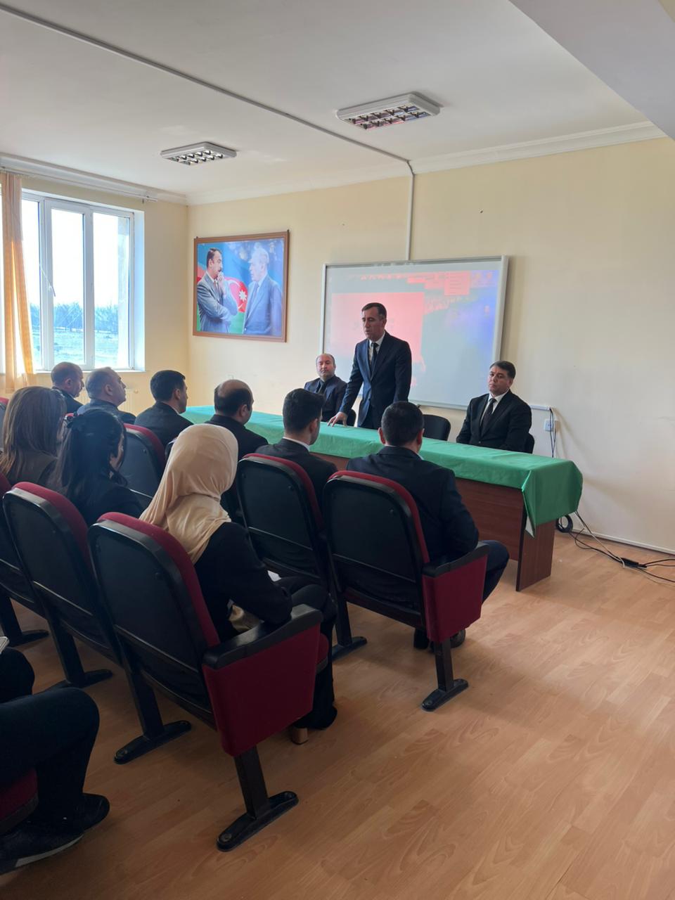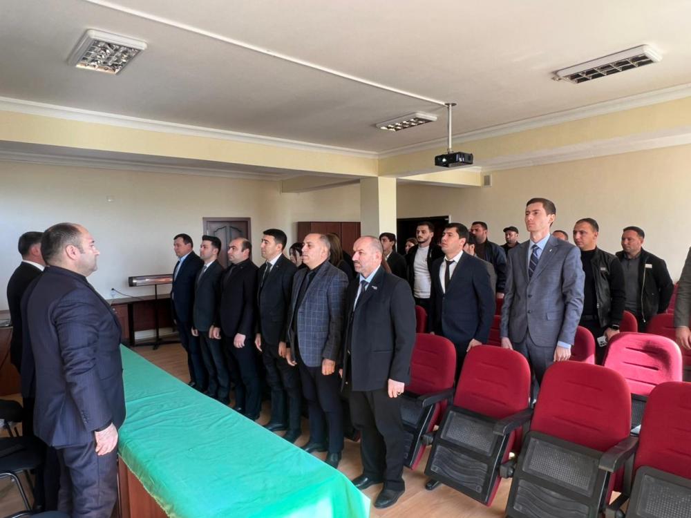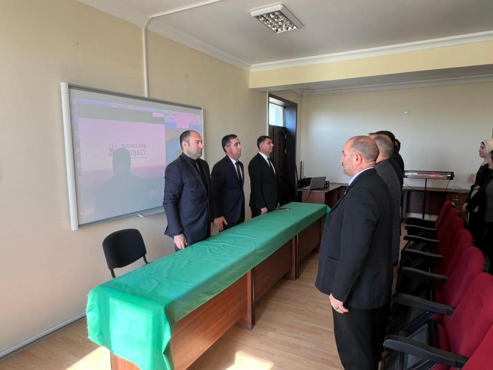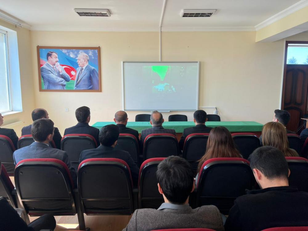 Tədbirdə Ümummilli Lider Heydər Əliyevin, ölkəmizin ərazi bütövlüyü uğrunda canlarını fəda etmiş şəhidlərimizin əziz xatirələri bir dəqiqəlik sükutla yad olunub. Sonra Xocalı soyqırımının 34-cü ildönümü ilə əlaqədar “Xocalı Nişanəsi” bədii-sənədli filmi nümayiş edilib.
