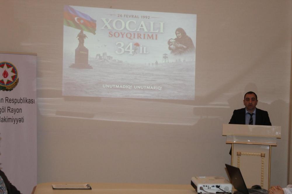 “Şəhərsalma və Memarlıq İli” çərçivəsində Göygöl Rayon İcra Hakimiyyətinin və Yeni Azərbaycan Partiyası (YAP) Göygöl rayon təşkilatının birgə təşkilatçılığı ilə Heydər Əliyev Mərkəzində Xocalı soyqırımının 34-ci ildönümü münasibəti ilə “Unutmadıq; Xocalı qan yaddaşımızdır” mövzusunda tədbir keçirilib.