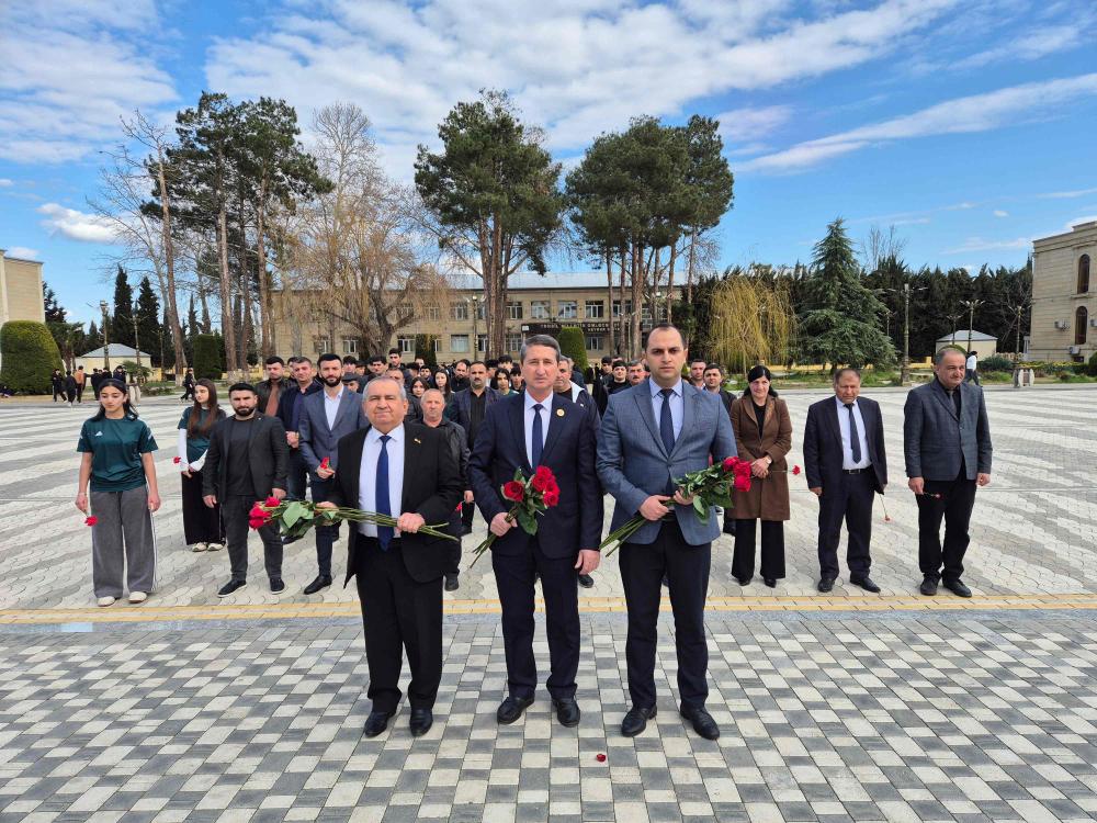 Tədbir iştirakçıları əvvəlcə Ulu Öndər Heydər Əliyevin abidəsini ziyarət edərək abidə önünə gül dəstələri qoyaraq onun əziz xatirəsini ehtiramla yad ediblər.