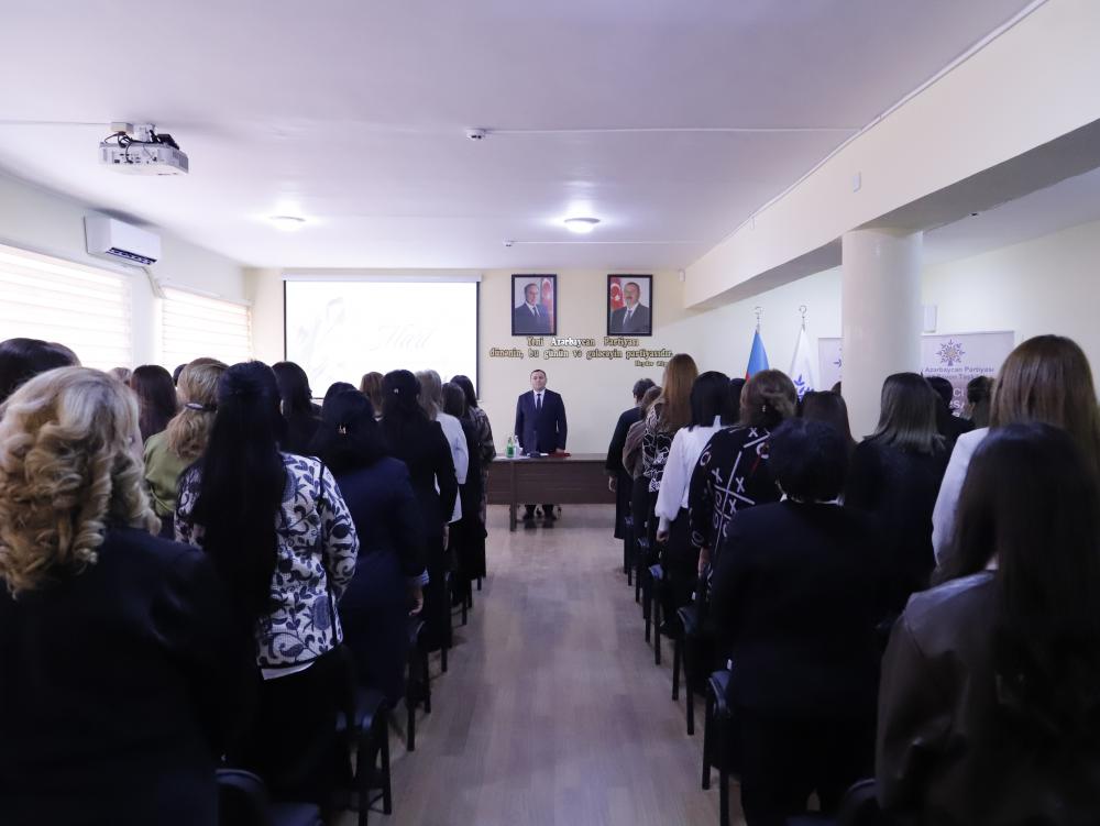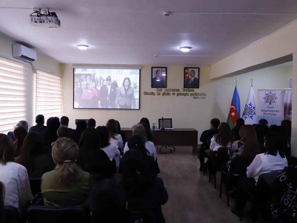 Çıxışlardan sonra 8 Mart – Beynəlxalq Qadınlar Gününə həsr olunmuş videoçarxa baxış keçirilib. Sonda qadınlara rayon təşkilatı adından gül buketləri təqdim olunub.