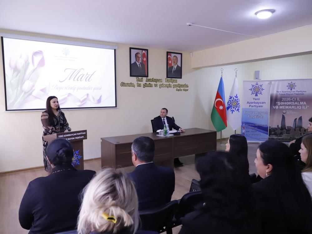 06 mart 2026-cı il tarixdə Yeni Azərbaycan Partiyası Tovuz rayon təşkilatının inzibati binasında 8 Mart – Beynəlxalq Qadınlar Günü münasibətilə partiya fəalları ilə görüş keçirilib.