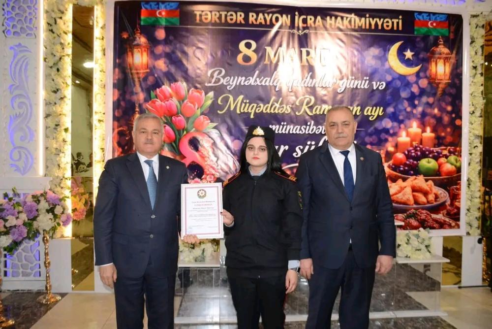 Tədbirin yekununda YAP Tərtər rayon təşkilatı və Tərtər Rayon İcra Hakimiyyəti tərəfindən şəhid anaları və şəhid həyat yoldaşlarına hədiyyələr, rayonun ictimai-siyasi həyatında fərqlənən qadınlara isə Fəxri Fərmanlar təqdim edilib.