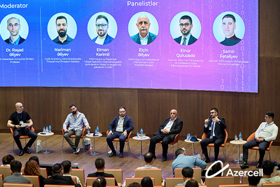 “Risklər və təhlükəsizlik tədbirləri: Gələcəyi necə qoruyaq?” mövzusuna həsr olunmuş paneldə “Azercell”in Məlumat Təhlükəsizliyi və İnsidentlərin İdarə Edilməsi bölməsinin rəhbəri Elnur Quluzadə və Təhlükəsizlik Əməliyyatları Mərkəzinin rəhbəri Samir Fətəliyev forum iştirakçılarını rəqəmsal təhlükəsizlik mədəniyyəti, informasiya sistemlərinin davamlılığı və qabaqlayıcı təhlükəsizlik tədbirləri barədə maarifləndiriblər.