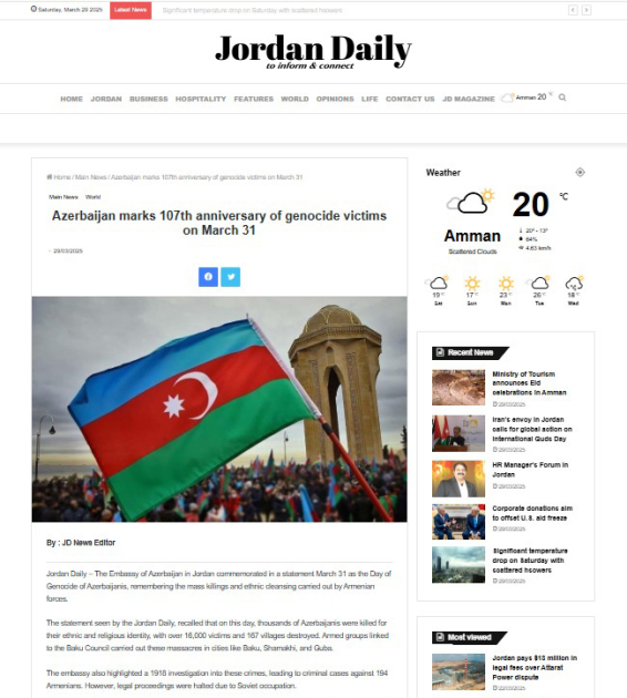 Ukrayna nəşrində Azərbaycanlıların Soyqırımı Gününə dair məqalə dərc edilib