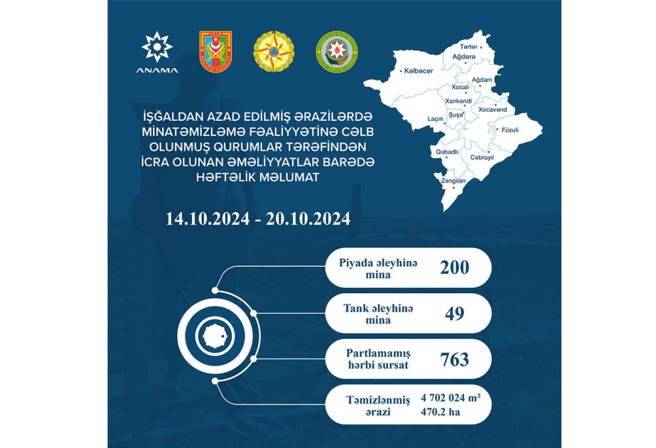 ANAMA: Ötən həftə 763 partlamamış hərbi sursat zərərsizləşdirilib