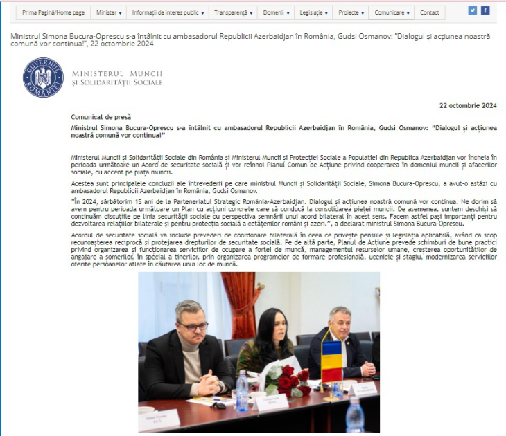 Rumıniya ilə Azərbaycan sosial müdafiə sahəsində əməkdaşlığı gücləndirir