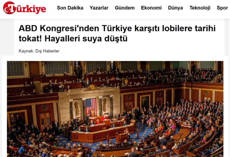 “Türkiye” qəzeti: Erməni lobbisinin təşəbbüsləri ABŞ Konqresində rədd edildi