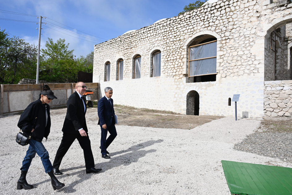 Azərbaycan Respublikasının Prezidenti İlham Əliyev və birinci xanım Mehriban Əliyeva Şuşada Çöl Qala məscidində aparılan bərpa işləri ilə tanış olublar.