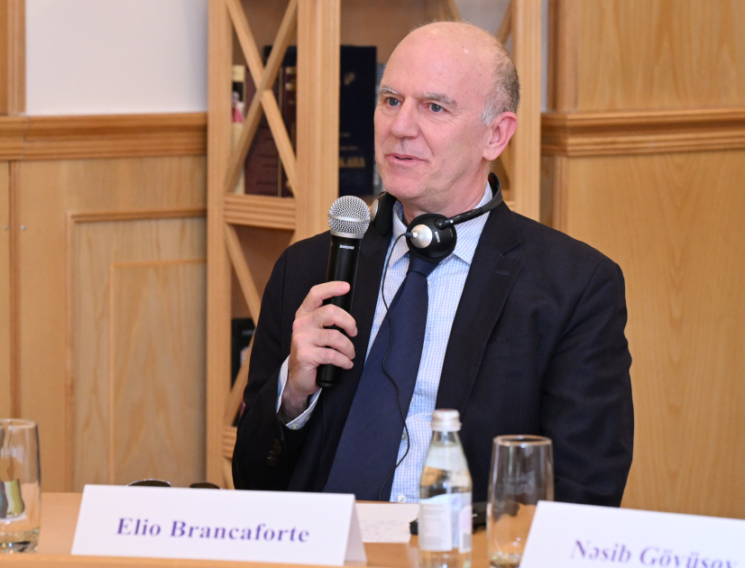 Dəyirmi masada, həmçinin ABŞ Tulane Universitetinin Alman və Slavyan Tədqiqatları şöbəsinin dosenti, müqayisəli ədəbiyyatşünaslıq üzrə fəlsəfə doktoru (Harvard) Elio Brankaforte layihənin əhəmiyyətindən danışıb, Nizami Gəncəvi yaradıcılığının dünyada böyük maraq kəsb etdiyini vurğulayıb, eyni zamanda, ümumiyyətlə Azərbaycan alimlərinin apardığı tədqiqatları yüksək qiymətləndirib.