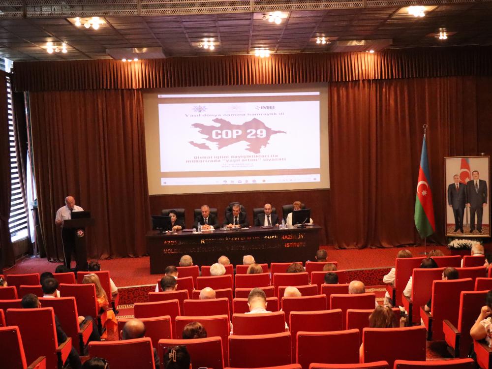 İyulun 12-də Yeni Azərbaycan Partiyasının Səbail rayon təşkilatının təşkilatçılığı ilə Molekulyar Biologiya İnstitutunda Birləşmiş Millətlər Təşkilatının İqlim Dəyişikliyi Konfransının 29-cu sessiyası (COP29) ilə bağlı "Qlobal iqlim dəyişiklikləri ilə mübarizədə “yaşıl artım” siyasəti” adlı tədbir keçirilib.