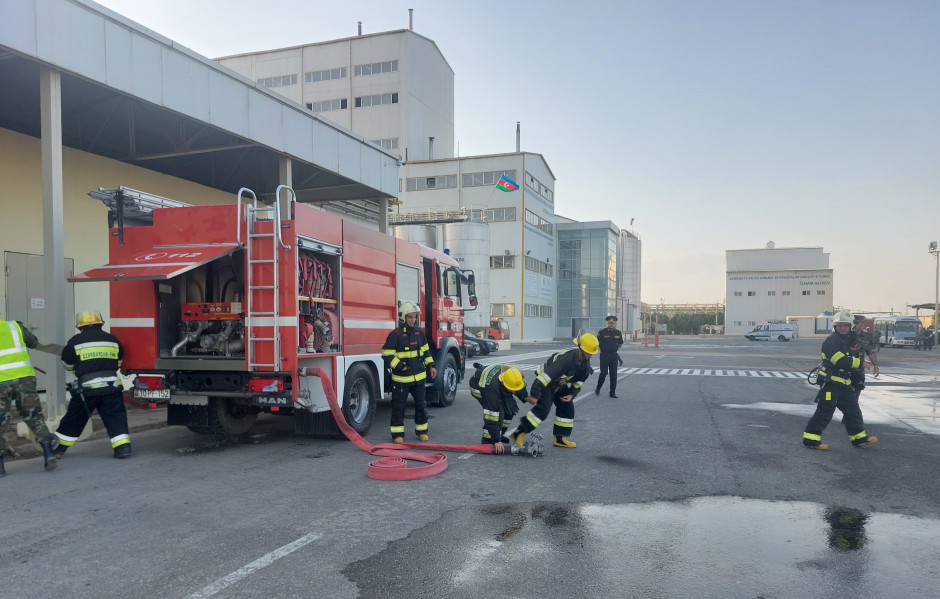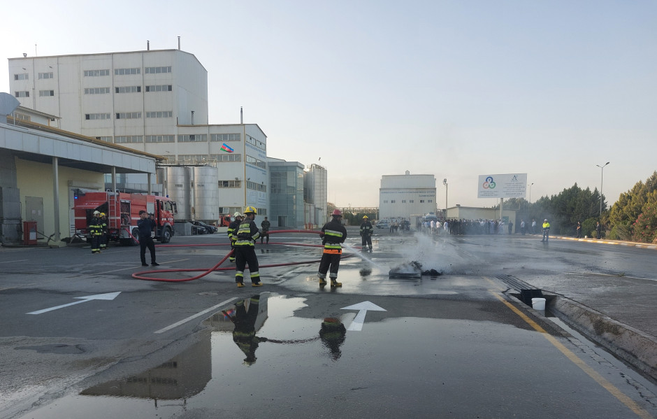 Fövqəladə Hallar Nazirliyinin (FHN) Sumqayıt Regional Mərkəzi “Azərsun” Sənaye Parkı ərazisindəki Bakı Qida və Yağ Fabrikinin istehsalat sahələrində “Fövqəladə halların nəticələrinin aradan qaldırılması” mövzusunda təlim keçirib.