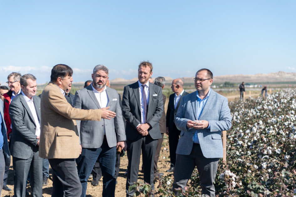 Sonra nazir MKT İK MMC-nin Yevlax İnnovasiya Təsərrüfatının fəaliyyəti ilə tanış olub. Nazirə şirkətin respublikanın müxtəlif rayonlarında pambıq əkinlərinin həyata keçirdiyi, bu sahələrdə müasir becərmə və suvarma texnologiyalarının tətbiqi istiqamətində addımlar atıldığı barədə məlumat verilib. Qeyd olunub ki, baxış keçirilən təsərrüfatda 360 hektar sahədə pivot suvarma sistemləri altında pambıq becərilir. Pambığın becərilməsində müasir suvarma sistemlərindən istifadə suvarma suyuna qənaət etməklə yanaşı, yüksək məhsuldarlığı da təmin etmiş olur. “Ötən ildən başlayaraq MKT İK MMC ilə müqavilə əsasında əməkdaşlıq edən fermerlərin təsərrüfatlarında becərmədən öncə sahələrdə lazer hamarlanması işləri həyata keçirilib. Hamarlanmış sahələrdə səth suvarma işləri xeyli asanlaşıb, suvarmaya sərf olunan vaxt əvvəlki illərlə müqayisədə 7 dəfə azalıb. Bu isə həm əmək resurslarına, həm də suvarma suyuna qənaət etməyə imkan verib. Bu təcrübənin daha geniş sahələrdə tətbiqi istiqamətində işlər davam etdirilir. Yevlax İnnovasiya Təsərrüfatında pivot altında eyni zamanda 16 pambıq sortunun müqayisəli əkinləri aparılıb. Gələcəkdə müqayisəli təhlil əsasında daha yaxşı sortların seçilərək geniş sahələrdə yayılması istiqamətində araşdırmalar aparılır”,- deyə əlavə olunub.
