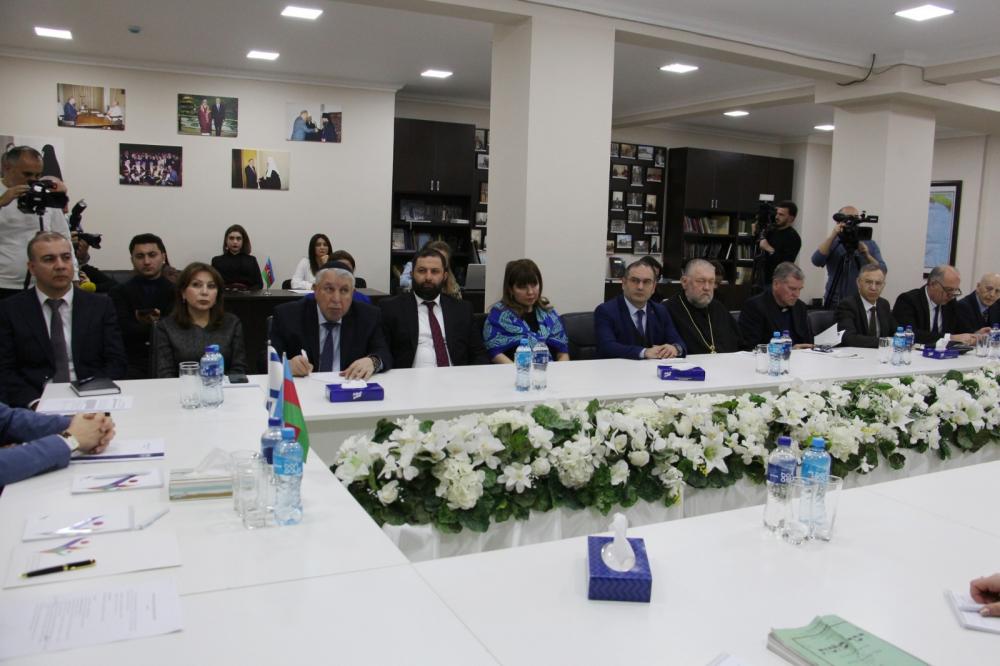 Tədbirin moderatoru, BBMM-nin icraçı direktoru Rəvan Həsənov dəyirmi masanı giriş sözü ilə açaraq Holokostun insanlığa, bəşəriyyətə qarşı törədilən dəhşətli cinayətlərdən biri olduğunu qeyd edib. Tarixin müxtəlif dövrlərində Azərbaycan xalqına qarşı da soyqırımı törədildiyini xatırladan icraçı direktor vurğulayıb ki, biz nə Holokostu, nə də Xocalını unutmayacağıq. İslamofobiyanın, antisemitizmin bəzi Avropa ölkələrində geniş yayılmasının təəssüf doğurduğunu dilə gətirən Rəvan Həsənov din və azadlıq amillərinin siyasiləşdirilməsinin yolverilməz olduğunu qeyd edib. O, Azərbaycanda güclü yəhudi irsinin mövcud olduğunu, ölkəmizdə yəhudilərin sərbəst və müstəqil şəkildə yaşadıqlarını deyib. Bildirib ki, ölkəmizdə yaşayan yəhudilər Azərbaycanın azadlığı uğrunda mübarizədə canlarından keçiblər. R.Həsənov diqqətə çatdırıb ki, tarixin qaranlıq məqamlarında yaşanmış hadisələr axıra qədər davam etməməlidir. İnsanlıq və gələcək naminə birgəyaşayış, dinc yanaşma mütləqdir.