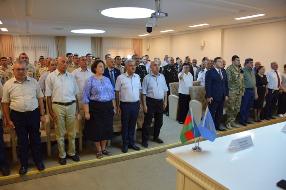 AZƏRTAC xəbər verir ki, tədbirdə əvvəlcə Dövlət Himni səsləndirilib, Ümummilli Lider Heydər Əliyevin və Azərbaycanın müstəqilliyi, ərazi bütövlüyü uğrunda canlarından keçmiş şəhidlərin əziz xatirəsi bir dəqiqəlik sükutla yad edilib.