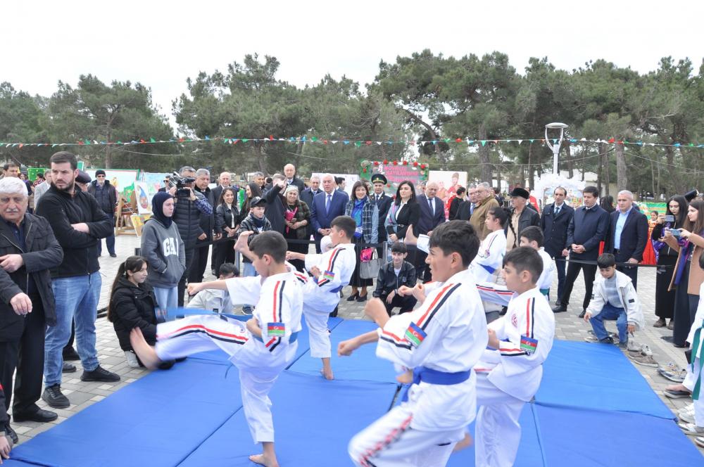 Daha sonra tədbir bayram tonqalının alışdırılması ilə açıq elan olunub. RİH başçısı rayon sakinlərini milli bayram münasibətilə təbrik edib, regionda mürəkkəb proseslərin getdiyi bir dövrdə ölkəmizdə hökm sürən sabitlik və əmin-amanlığın xüsusi əhəmiyyət daşıdığını vurğulayıb. Bildirilib ki, Novruz Azərbaycan xalqının zəngin dünyagörüşünü əks etdirir və milli-mənəvi sərvətlərimiz içərisində mühüm yer tutur. Həmçinin vurğulanıb ki, ənənələrin əsrlər boyu qorunub saxlanılıb yaşadılması xalqımızın köklərinə bağlılığını göstərir. Qeyd olunub ki, bayramın dövlət səviyyəsində geniş qeyd olunması Ümummilli Lider Heydər Əliyevin adı ilə bağlı olub, onun rəhbərliyi dövründə milli-mənəvi irsin dirçəldilməsi istiqamətində mühüm addımlar atılıb. Eyni zamanda qeyd olunub ki, Müzəffər Ali Baş Komandan İlham Əliyevin rəhbərliyi ilə ölkəmizdə əldə olunan möhtəşəm Zəfərdən sonra Qarabağ və Şərqi Zəngəzurda aparılan genişmiqyaslı quruculuq işləri, eləcə də Birinci vitse-prezident Mehriban xanım Əliyevanın milli-mənəvi dəyərlərimizin qorunması və təbliği istiqamətində gördüyü işlər Novruz ənənələrinin daha böyük ruh yüksəkliyi ilə yaşadılmasına mühüm töhfə verir. Bu siyasətin nəticəsi olaraq bu gün işğaldan azad olunmuş torpaqlarda da bayram tonqalları alovlanır, xalqımızın qürur və sevinc hissi daha da güclənir.