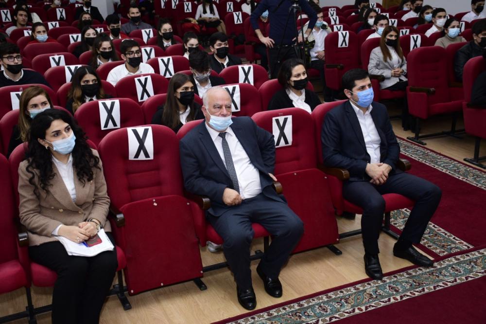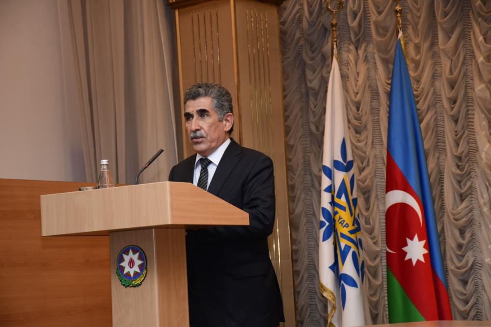 YAP Xətai rayon təşkilatının sədri Vüqar Rəhimzadə tədbirin mahiyyətini, mövzunun bütün dövrlər üçün aktuallığını və hər bir Azərbaycan vətəndaşının qarşısında dayanan vəzifə olduğunu önə çəkərək bilbirib ki, bugünkü qüdrətli, güclü, qalib Azərbaycan ulu öndər Heydər Əliyevin şah əsəridir: “Ümummilli Lider 1993-cü ildə xalqın təkidli tələbi ilə hakimiyyətə qayıdışı ilə yeni Azərbaycan qurdu. Müstəqilliyimizin bərpasının ilk illərində Azərbaycanın yaşadıqları hər kəsin yaddaşındadır. Bugünkü gənclik o illəri tarix dərsliklərindən və digər vəsaitlərdən öyrənirlər. Ulu öndər Heydər Əliyevin gördüyü işlər Vətəninə, dövlətinə, xalqına nə qədər bağlı olduğunu nümayiş etdirir. O hələ hakimiyyətinin birinci dövründə- 1969-1982-ci illərdə Azərbaycanın müstəqil gələcəyini düşünərək biri-birindən önəmli addımlar atmışdır. Bunlar arasında gənclərin keçmiş ittifaqın ən nüfuzlu ali məktəblərində təhsil almağa göndərilməsini, Cəmşid Naxçıvanski adına hərbi liseyin yaradılmasını xüsusi qeyd etmək olar. Ulu öndər Heydər Əliyev sovetlər birliyi dövründə Azərbaycanı qabaqcıl respublikalar sırasına çıxardığı kimi, 1993-cü ildə xalqın təkidli tələbi ilə hakimiyyətə qayıdışı ilə müstəqilliyi əbədiləşdirən uğurlu bir yolun başlanğıcını qoydu. 1993-cü ildə xalqın təkidli tələbi ilə hakimiyyətə qaydışından sonra Azərbaycanın qısa müddətdə sabitilk diyarına, qüdrətli iqtisadiyyata malik ölkəyə çevrilməsinə əsas yaratdı.”