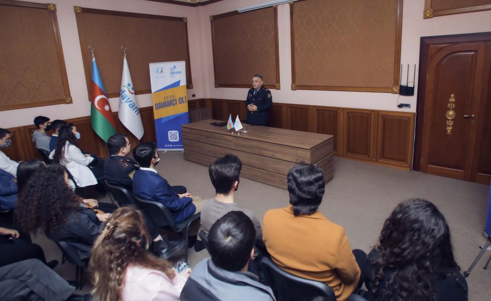 17 mart tarixində "Davam" Gənclər Hərəkatının mərkəzi ofisində Azərbaycan Respublikası Daxili İşlər Nazirliyinin Mətbuat Xidmətinin KİV və ictimaiyyətlə əlaqələr şöbəsinin rəisi, polis mayoru Elşad Hacıyev ilə davamçı gənclər arasında “Narkotik vasitələrə qarşı mübarizə” mövzusunda görüş baş tutub.