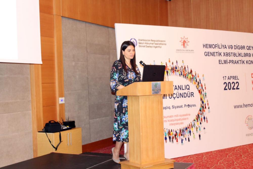 Qeyri Hökumət Təşkilatlarına Dövlət Dəstəyi Agentliyinin maliyyə dəstəyi ilə Hemofiliyalı Xəstələrin Respublika Assosiasiyasının təşkilatçılığı ilə Hemofiliya və Digər Qeyri İnfeksion Genetik Xəstəliklərə Həsr Edilmiş Elmi – Praktik Konfrans keçirilib.