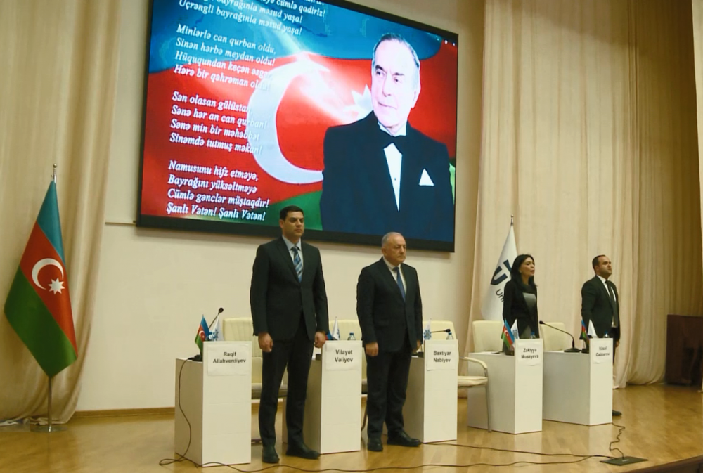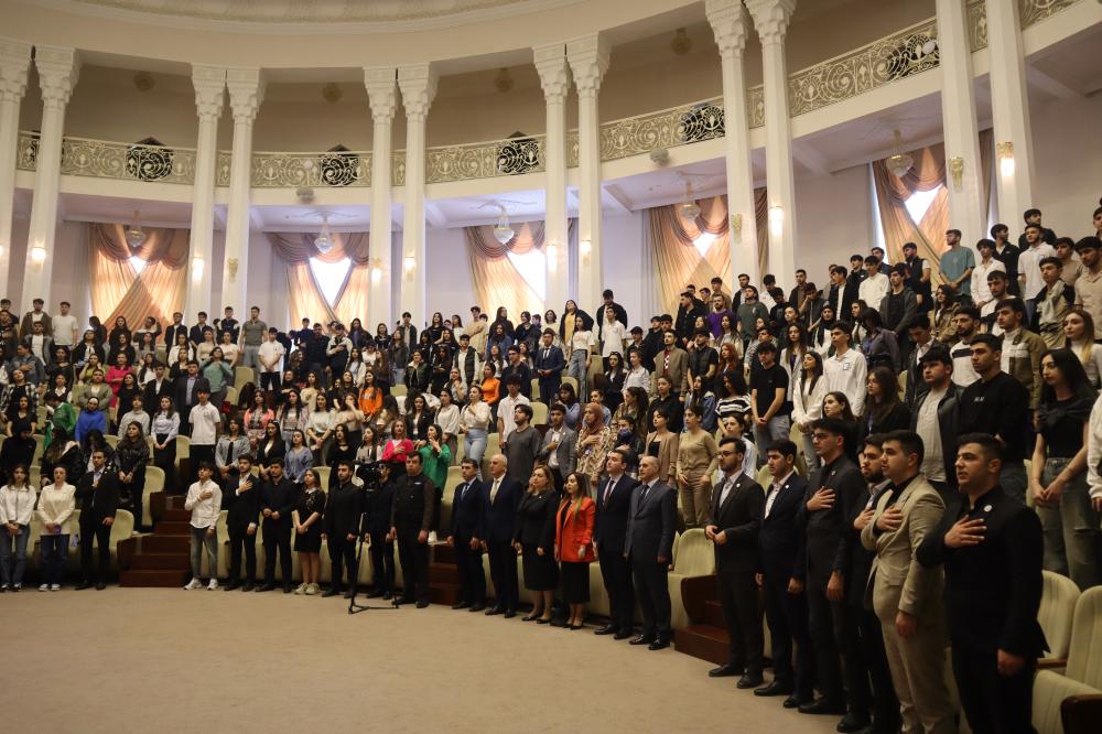 Tələbə-gənclərin iştirak etdiyi tədbirdə əvvəlcə Ulu Öndər Heydər Əliyevin və Azərbaycanın ərazi bütövlüyü uğrunda canlarını qurban vermiş şəhidlərimizin əziz xatirəsi bir dəqiqəlik sükutla yad edilib. Sonra Azərbaycan Respublikasının Dövlət Himni səsləndirilib.